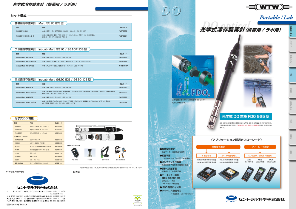 FDOのセンサーキャップは角度が45度に設計デザインされており、水面に対して垂直にした場合でも気泡の影響を受けずに正確な測定ができます。その他、校正不要、試料の流速不要な...