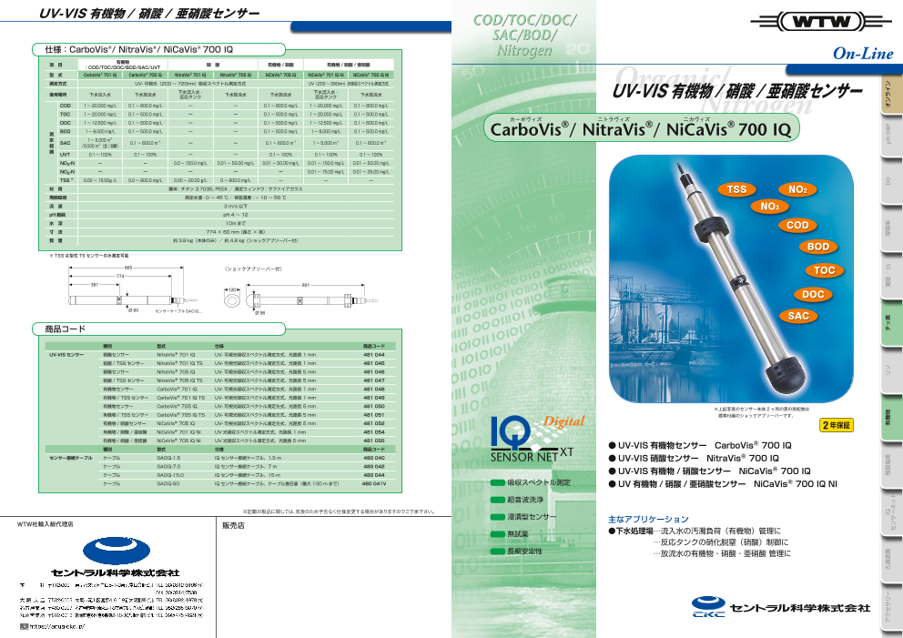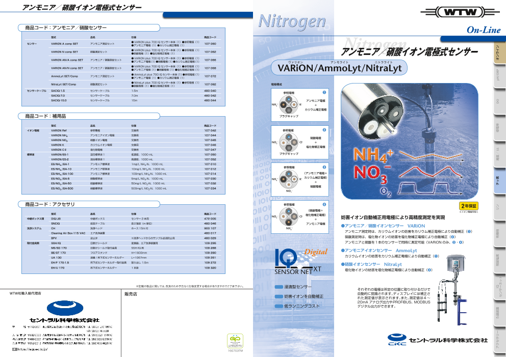 アンモニアイオン電極と硝酸イオン電極を一本のセンサーに組み込み同時に測定、さらに妨害イオンの影響を自動的に補正することにより、高精度測定を実現した浸漬型センサーです...