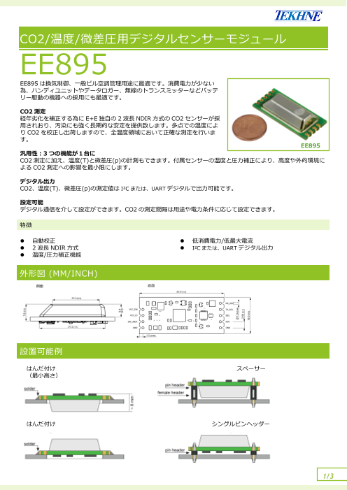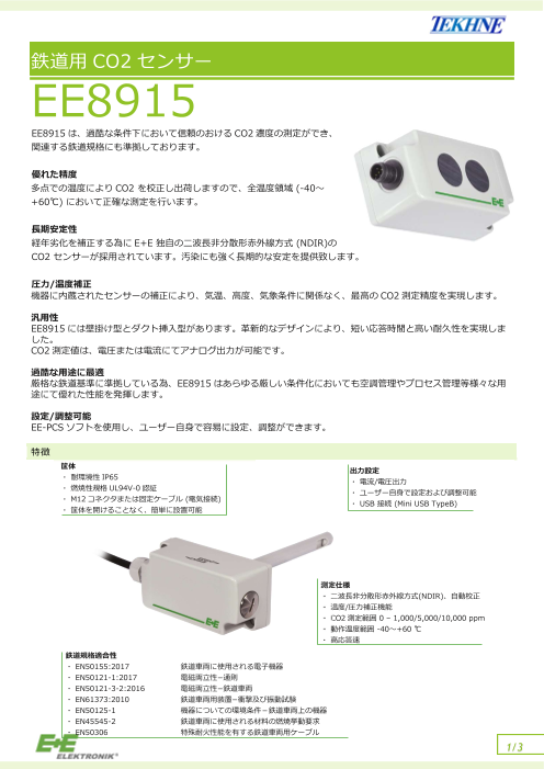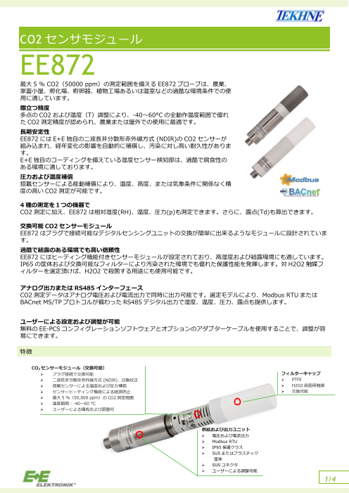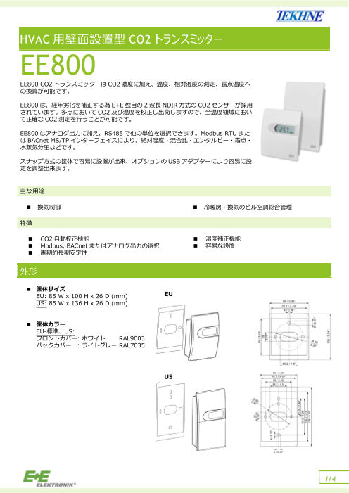 ● 経済産業省が推奨する検知原理が光学式のセンサー● CO2自動校正機能により長期安定性を実現● 温度補正機能● 汚染に対する優れた耐性■EE850は、換気装置やビルオ...