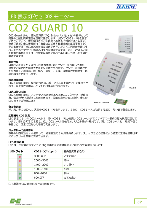 ● 経済産業省が推奨する検知原理が光学式のセンサー● CO2自動校正機能(自動補正機能)付帯● 画期的長期安定性● 温度補正機能● 耐汚染性● 設置が容易■EE820...