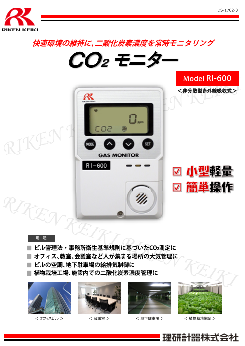 〇 小型軽量〇 簡単操作<用途>・ビル管理法・事務所衛生基準規則に基づいたCO₂測定に・オフィス、教室、会議室など人が集まる場所の大気管理に・ビルの空調、地下...