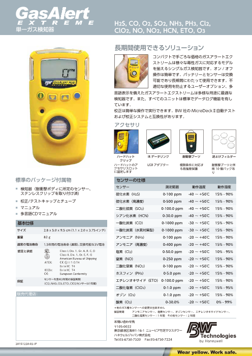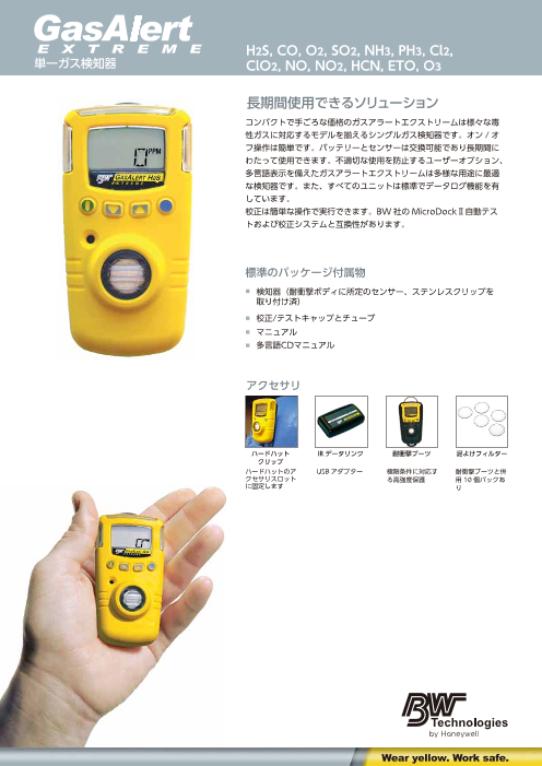 コンパクトで手ごろな価格のガスアラートエクストリームは様々な毒 性ガスに対応する...