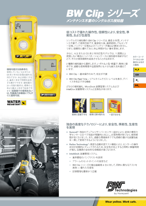 シングルガス検知器のBWClipシリーズは、最長3年間メンテナンス不要で、ご使用可能です