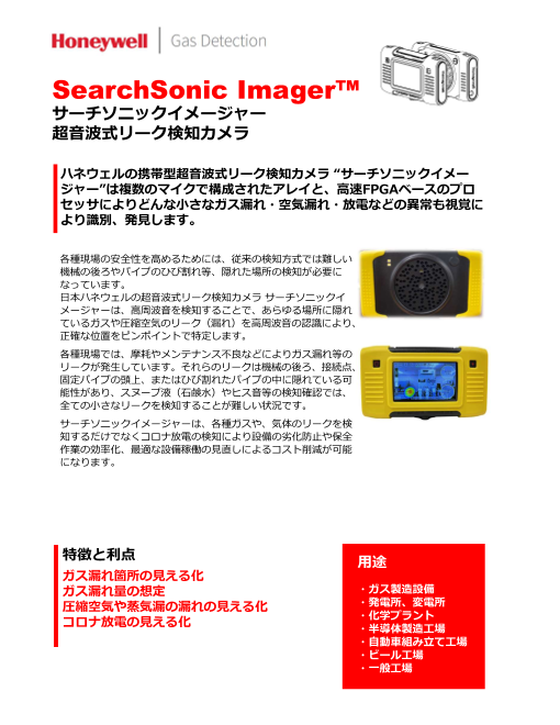各種現場の安全性を高めるためには、従来の検知方式では難しい機械の後ろやパイプのひび割れ等、隠れた場所の検知が必要になっています。日本ハネウェルの超音波式ガス検知カメ...