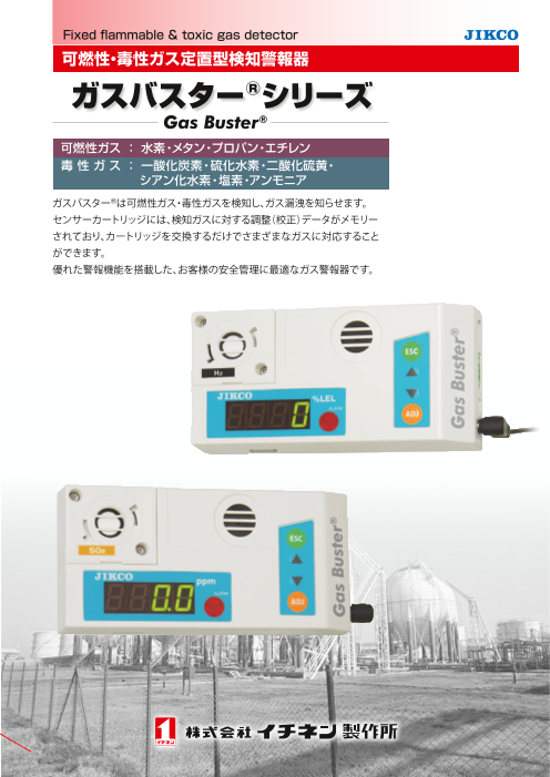 定置型ガス警報器ガスバスターは大気雰囲気中に漏洩した特定ガスを検知し、警報機能により、ガス漏洩の危険を周囲に知らせます。センサーカートリッジを交換するだけで、検知ガ...