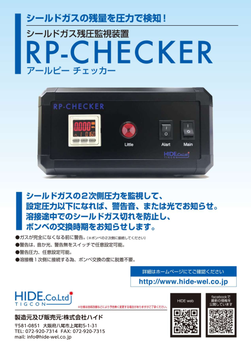 シールドガスの2次側圧力を監視して、設定圧力以下になれば、警告音、または光でお知らせ。溶接途中でのシールドガス切れを防止し、ボンベの交換時期をお知らせします。◆...