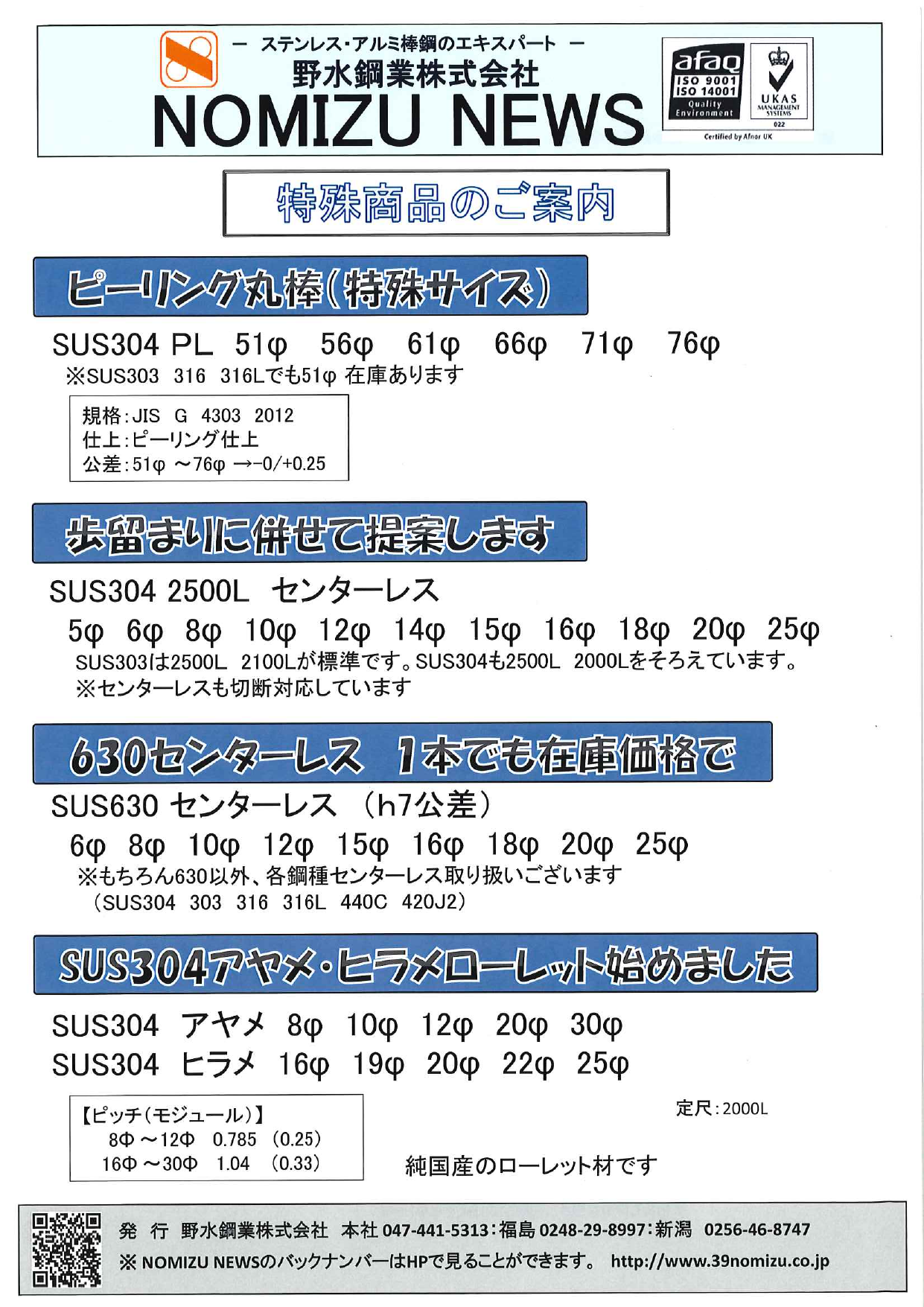 ステンレスで最高の被削性とSUS303並みの耐食性を備えながら環境規制にも完全対応する新時代のステンレス鋼◆良く切削れる◆錆びにくい◆環境に優しい◆電磁ステンレスと...