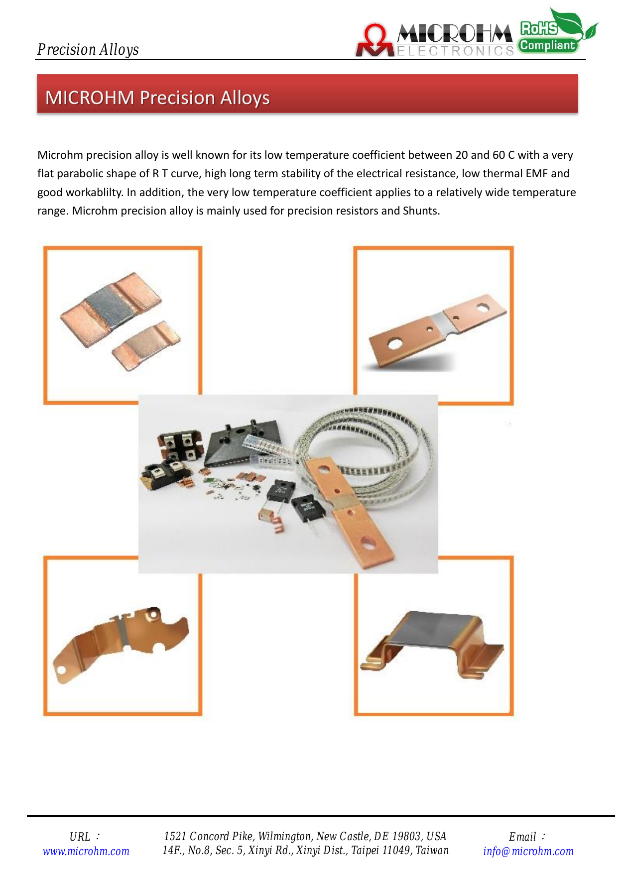 Microhm precision alloy is well known for its low temperature coefficient between 20 and 60 C with a very flat parabolic shape of R T curve, high long term stability...