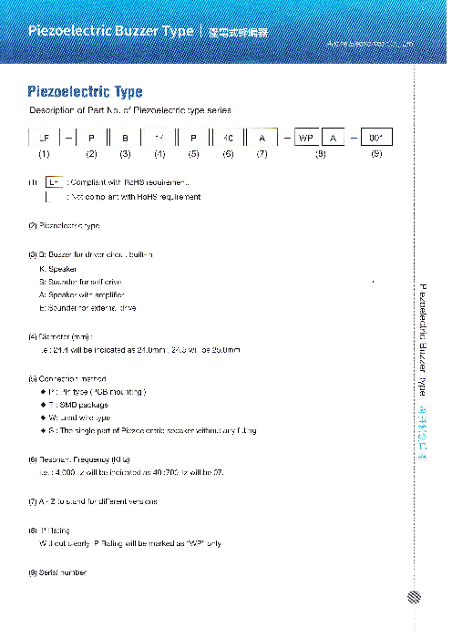 P.06〜 Piezoelectric buzzerP.20〜 Piezoelectric sounder external driveP.28〜 Piezoelectric sounder self-driveP.32〜 Piezoelectric speakerP.34〜 Piezoele...