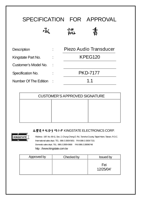 Kingstate (キングステイト) は、1977年に設立された台湾の音響製品の専門メーカーです。ブザー、マイクロレシーバー、スピーカー、コンデンサーマイクなどの音響部品とイヤホン...