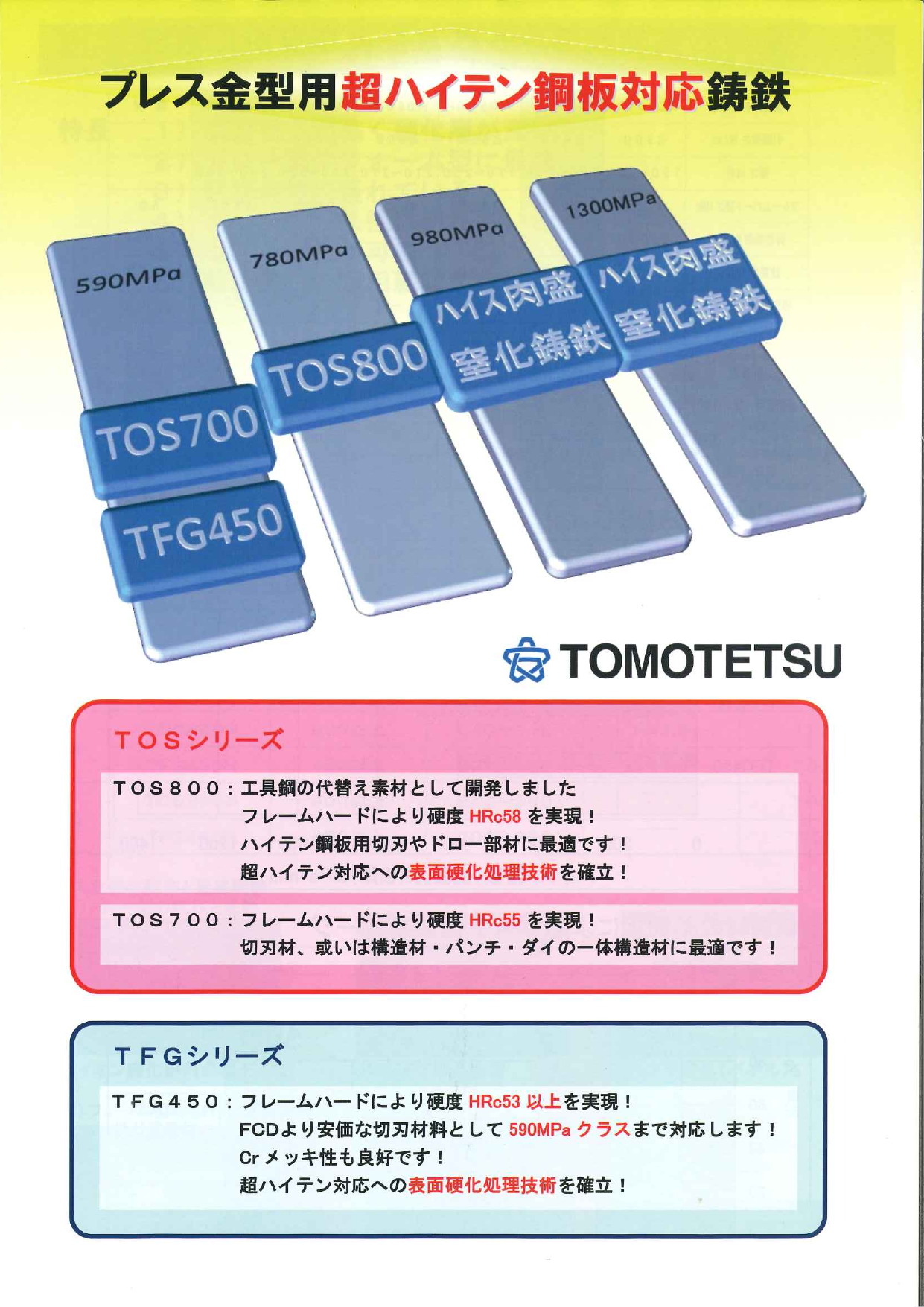 ・TOSシリーズ TOS800 工具鋼の代替え素材として開発しました フレームハードにより硬度HRc58を実現! ハイテン鋼板用切刃やドロー部材に最適です! 超ハイテン...