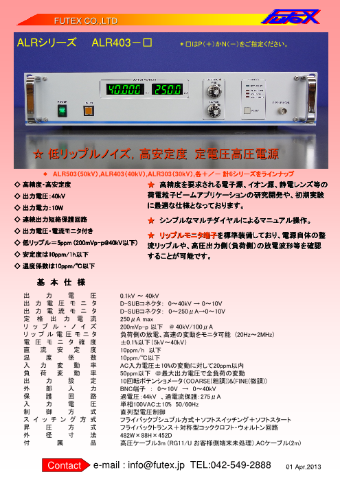 低リップルノイズ、高安定度 定電圧高圧電源