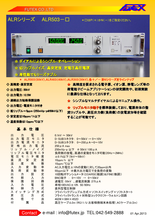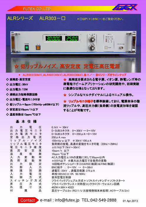 ◆高精度を要求される電子源、イオン源、静電レンズ等の荷電粒子ビームアプリケーションの研究開発や、初期実験に最適な仕様となっております。◆シンプルなマルチダイヤルによ...