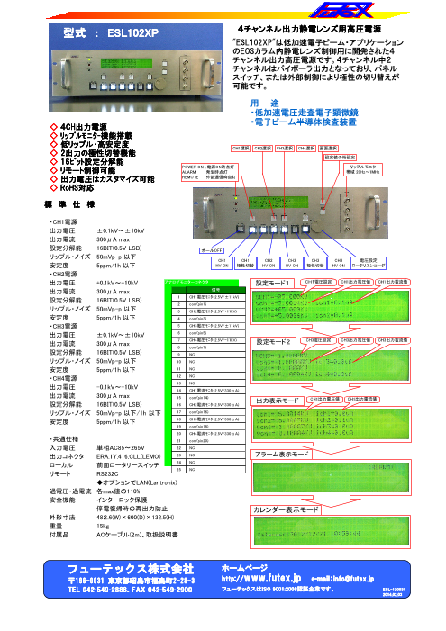 "ESL102XP"は低加速電子ビーム・アプリケーションのEOSカラム内静電レンズ制御用に開発された4チャンネル出力高圧電源です。4チャンネル中2チャンネルはバイポーラ出力となっ...