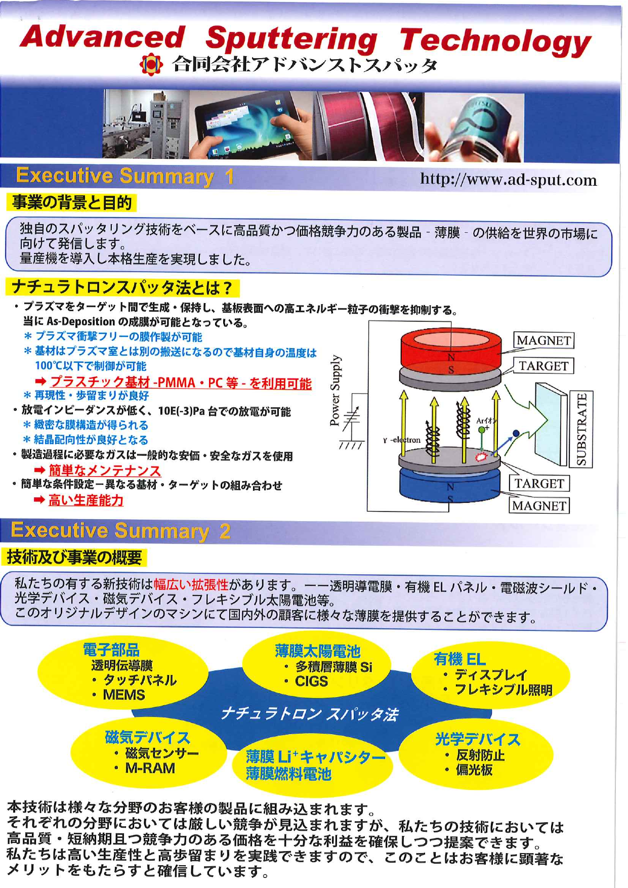スパッタリング技術 Advanced Sputtering Technologyのご案内です