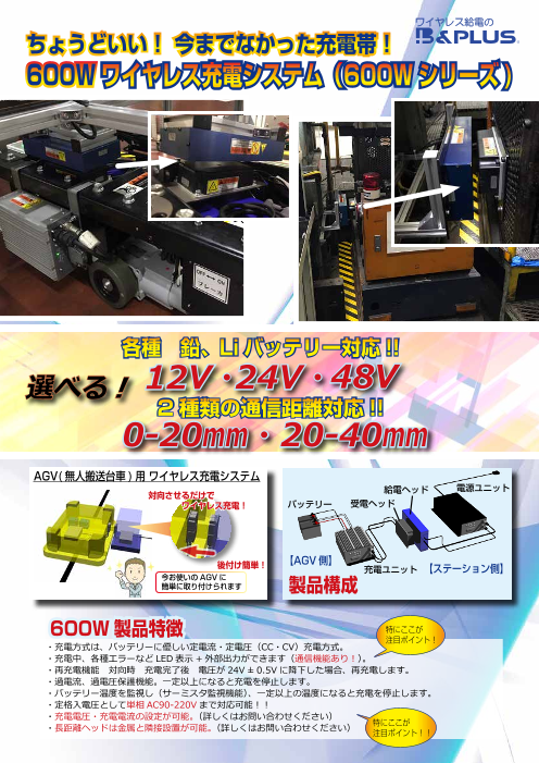 対向するだけでワイヤレス充電!今 お使いのAGV (自動搬送車) に簡単に後付できます! 【12V・24V・48V 各種 鉛、Li バッテリー対応 !!】 【0-20mm・20-40mm 2 種類の...