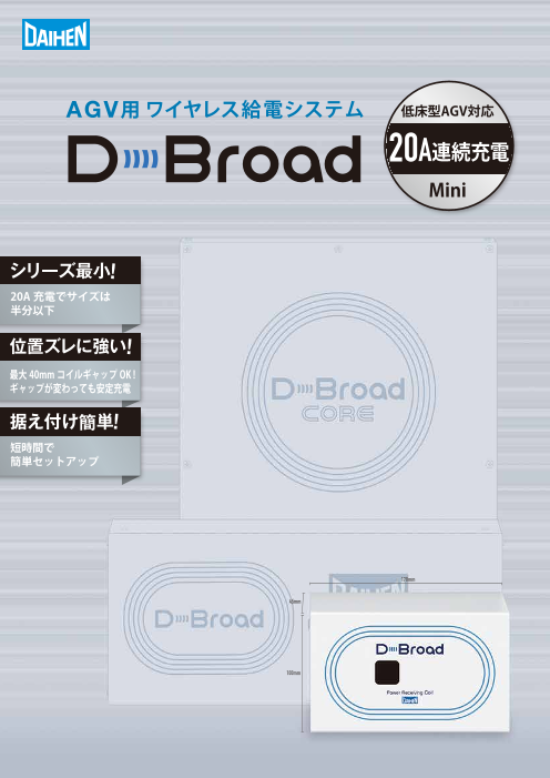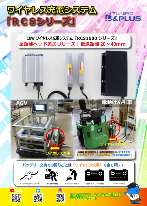 全機種のAGVに据え付け可能な高効率ワイヤレス充電システム◆シリーズ最小! 20A充電サイズは半分以下◆位置ズレに強い! 最大40mmコイルギャップOK! ギャップが...