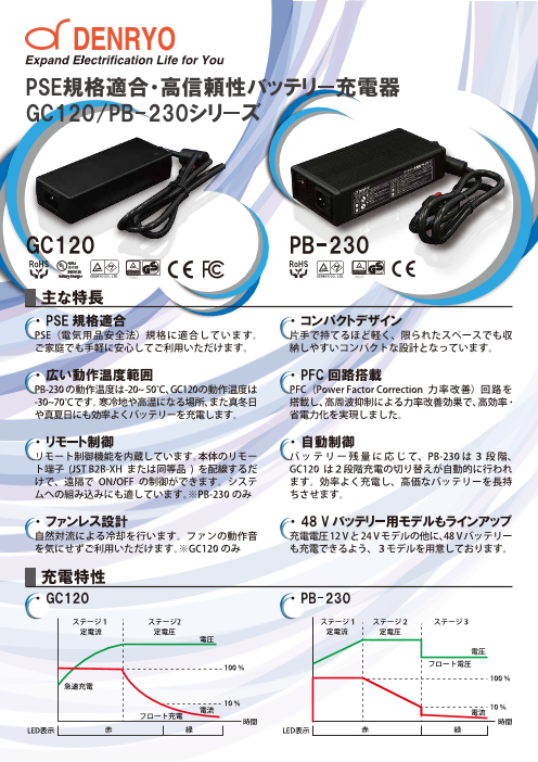 ・PSE(電気用品安全法)規格に適合しています・広い動作温度範囲 PB-230:-20~50℃、GC120:-30~70℃・リモート制御機能を内蔵しています・ファンレス設計 自然対...