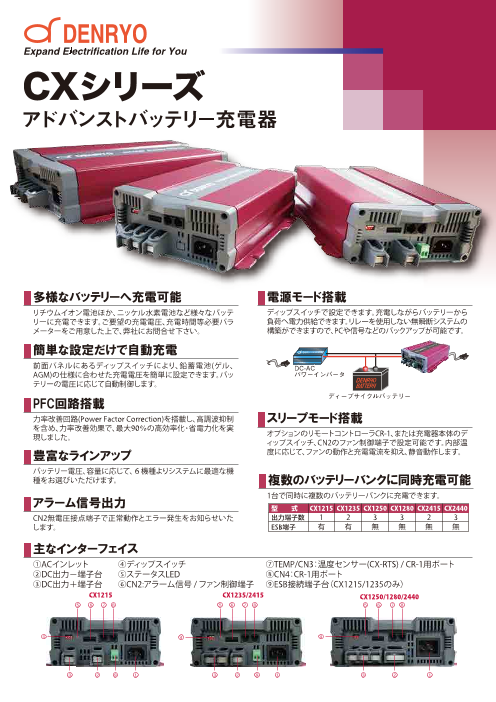 ・簡単な設定だけで自動充電・電源モード搭載 ディップスイッチで設定できます・豊富なラインアップ バッテリー電圧、容量に応じて、6種類よりシステムに最適な機種を...