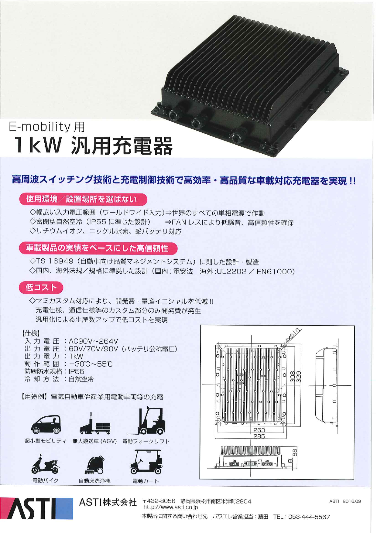 高周波スイッチング技術と充電制御技術で高効率・高品質な車載対応充電器を実現!!・使用環境/設置場所を選ばない・車載製品の実績をベースにした高信頼性・低コスト
