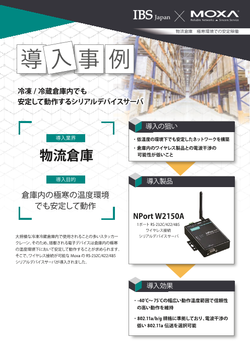 冷凍/冷蔵倉庫内でも安定して動作するシリアルデバイスサーバ