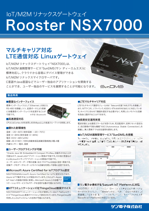 IoT/M2Mリナックスゲートウェイ「NSX7000」は、IoT/M2M遠隔管理サービス「SunDMS(サンディーエムエス)」に標準対応し、クラウドから容易にデバイス管理ができるIoT/M2Mリ...
