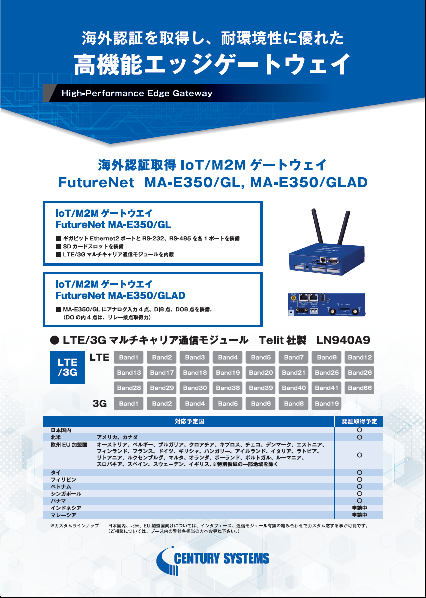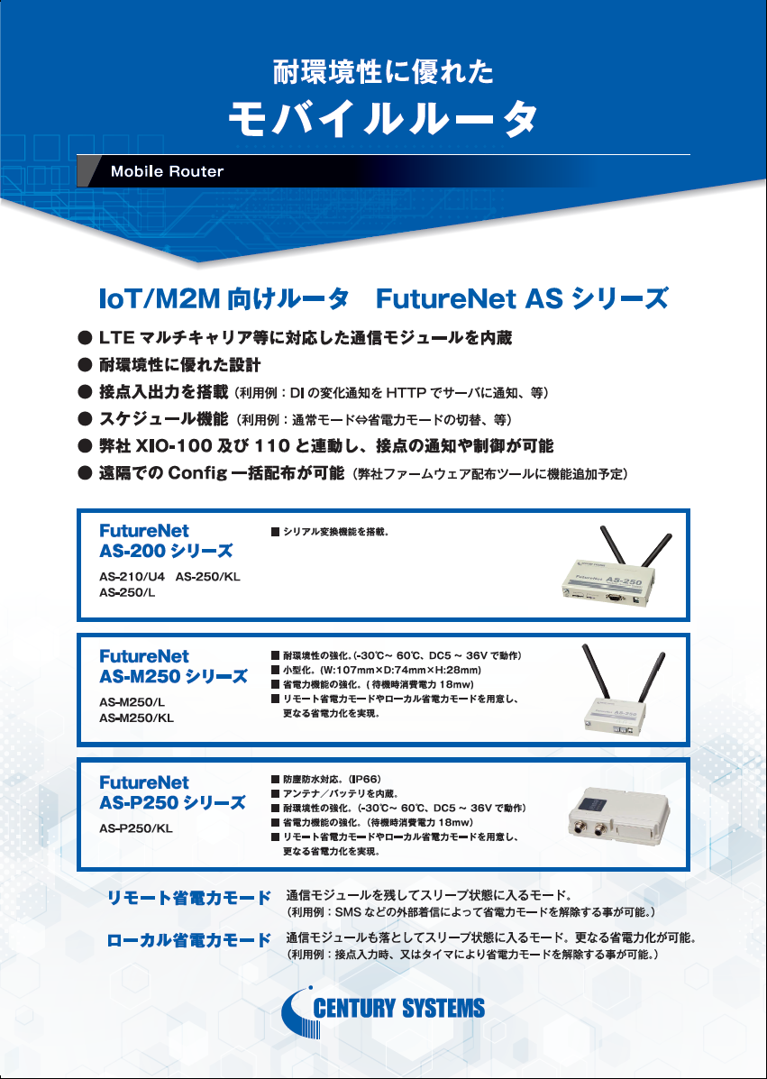 ◆さまざまなご要望にあわせた多彩なラインアップ◆産業用途として 優れた耐環境性◆キャリア無線(4G LTE)を利用した幅広いソリューションに対応◆詳細はカタログをダウンロ...