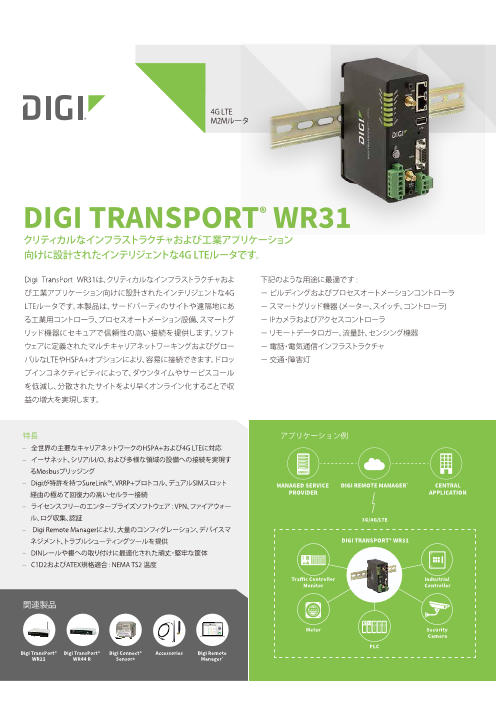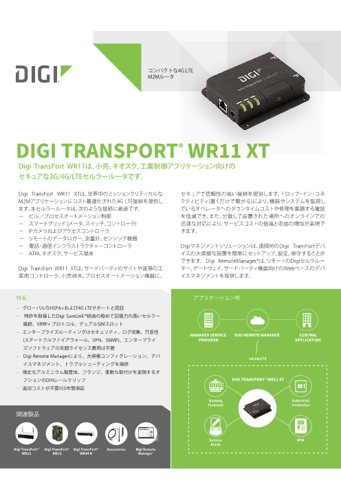 ●グローバルなHSPA+および4G LTEサポートと認証●特許を取得したDigi SureLink(TM)経由の極めて回復力の高いセルラー接続、VRRP+ プロトコル、デュアルSIMスロット●エンター...