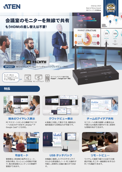 ■特長・端末のワイヤレス表示・クワッドビュー表示・チームのアイデア共有・司会モード・USBタッチバック・リモートビュー■利用シーン・会議、ミーティング...