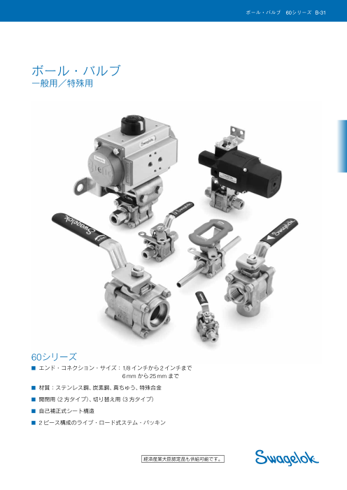 ◼︎エンド・コネクション・サイズ: 1/8インチから2インチまで6mmから25mmまで◼︎材質:ステンレス鋼、炭素鋼、真ちゅう、特殊合金◼︎開閉用(2方タイプ)、切り替え用(3方タ...