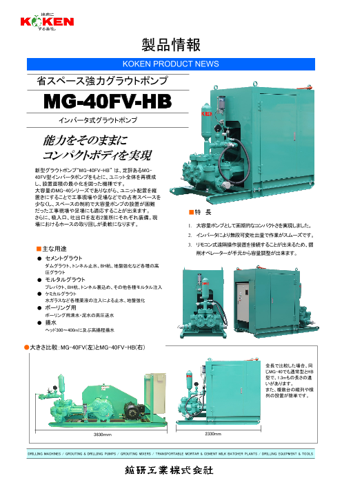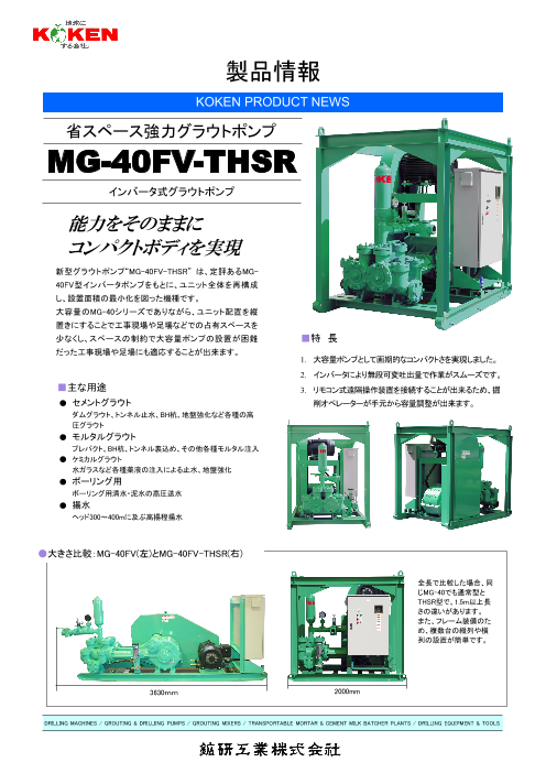 ・長さ2330mmにより狭隘の現場でも複数台の縦列や横列の設置が簡単。(弊社標準MG-40FV長さ:3630mm マイナス1.3m)・ユニット配置を縦置きにすることで工事現場や足場など...