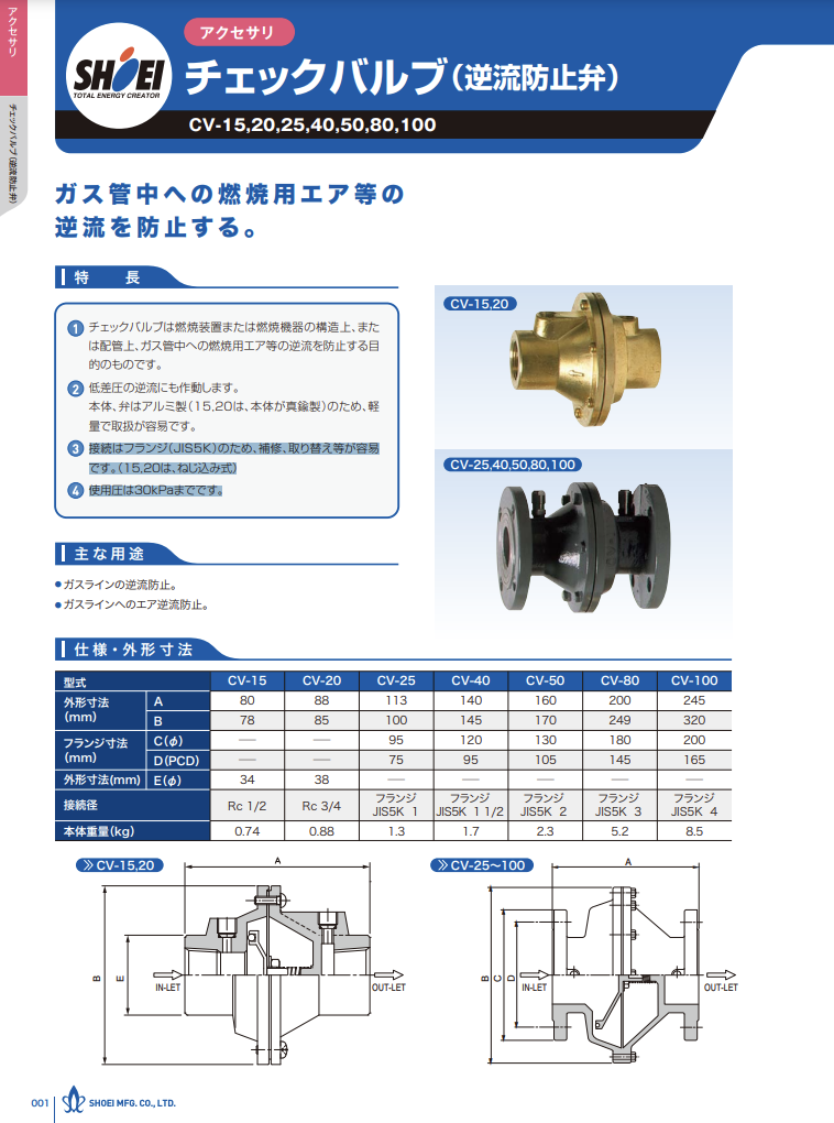◆チェックバルブは燃焼装置または燃焼機器の構造上、または配管上、ガス管中への燃焼用エア等の逆流を防止する目的のものです。◆低差圧の逆流にも作動します。本体、弁はアル...