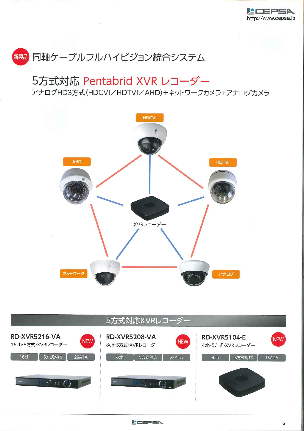 5方式対応 Pentabrid XVR レコーダー カタログのご案内です。