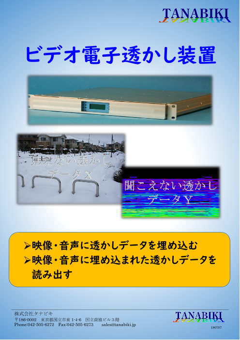 ◆映像・音声に透かしデータを埋め込む◆映像・音声に埋め込まれた透かしデータを読み出す◆詳細はカタログをダウンロードしてご覧下さい。