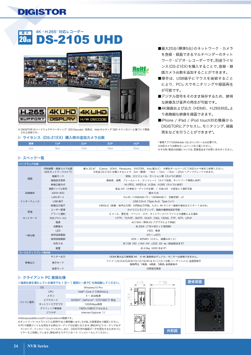 ■操作は、USB端子にマウスを接続することにより、PCレスでモニタリングや録画再生が可能です。 ■デジタル信号をそのまま保存するため、鮮明な映像及び音声の再生が可能です。 ...