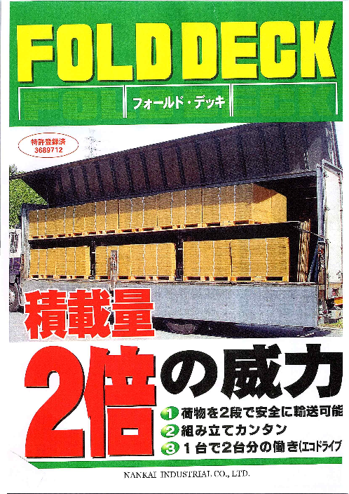 パレットを2段に積む事ができるため輸送効率がアップ。フォークリフトを使用してトラック荷台上で簡単に組み立てできます。折りたたんだ状態でも荷物を積載することができま...
