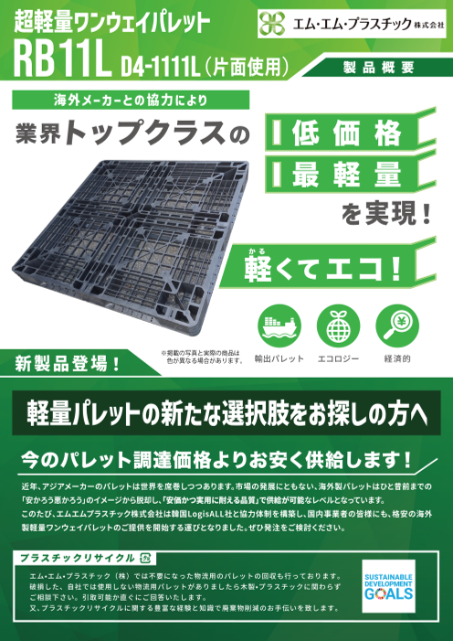 軽くてエコ!軽量パレットの新たな選択肢をお探しの方へ今のパレット調達価格よりお安く供給します!◆詳細はカタログをダウンロードしご覧いただくか、お気軽にお問い...