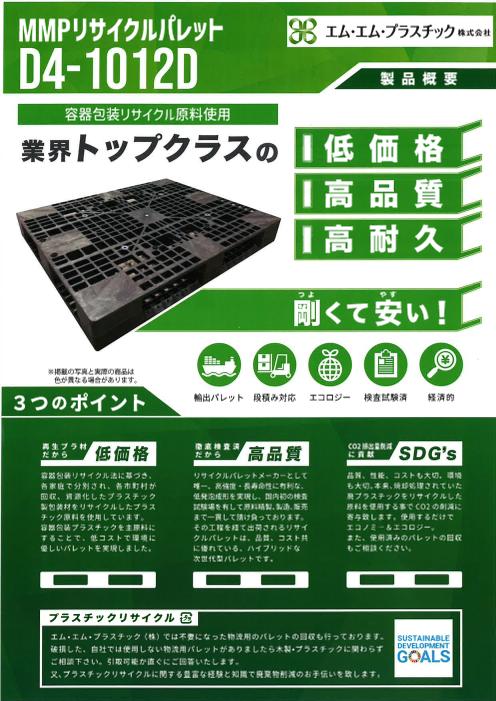 ・再生プラだから「低価格」・徹底検査済だから「高品質」・CO2排出量削減に貢献「SDG’s」◆詳細はカタログをダウンロードしご覧いただくか、お気軽にお問い合わせ下さい。