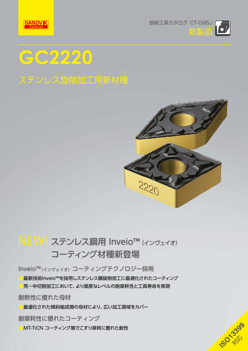 ◆Inveio(インヴェイオ)コーティングテクノロジー採用・最新技術Inveioを採用しステンレス鋼旋削加工に最適化されたコーティング ・荒~中切削加工において、より高度...