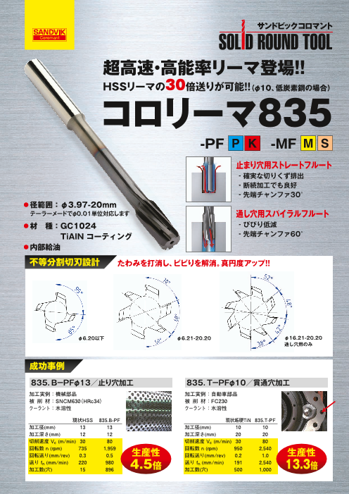 HSSリーマの30倍送りが可能!(φ10、低炭素鋼の場合)