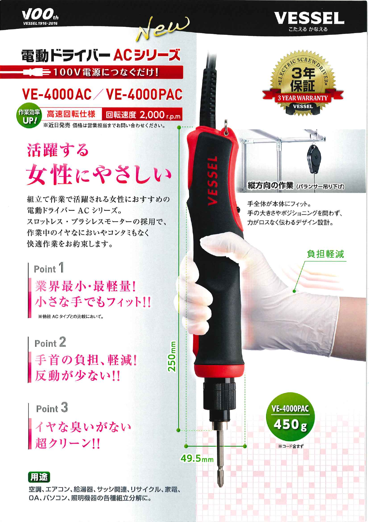 組立て作業で活躍される女性におすすめの電動ドライバー ACシリーズ。スロットレス・ブラシレスモーターの採用で、作業中のイヤなにおいやコンタミもなく快適作業をお約束...