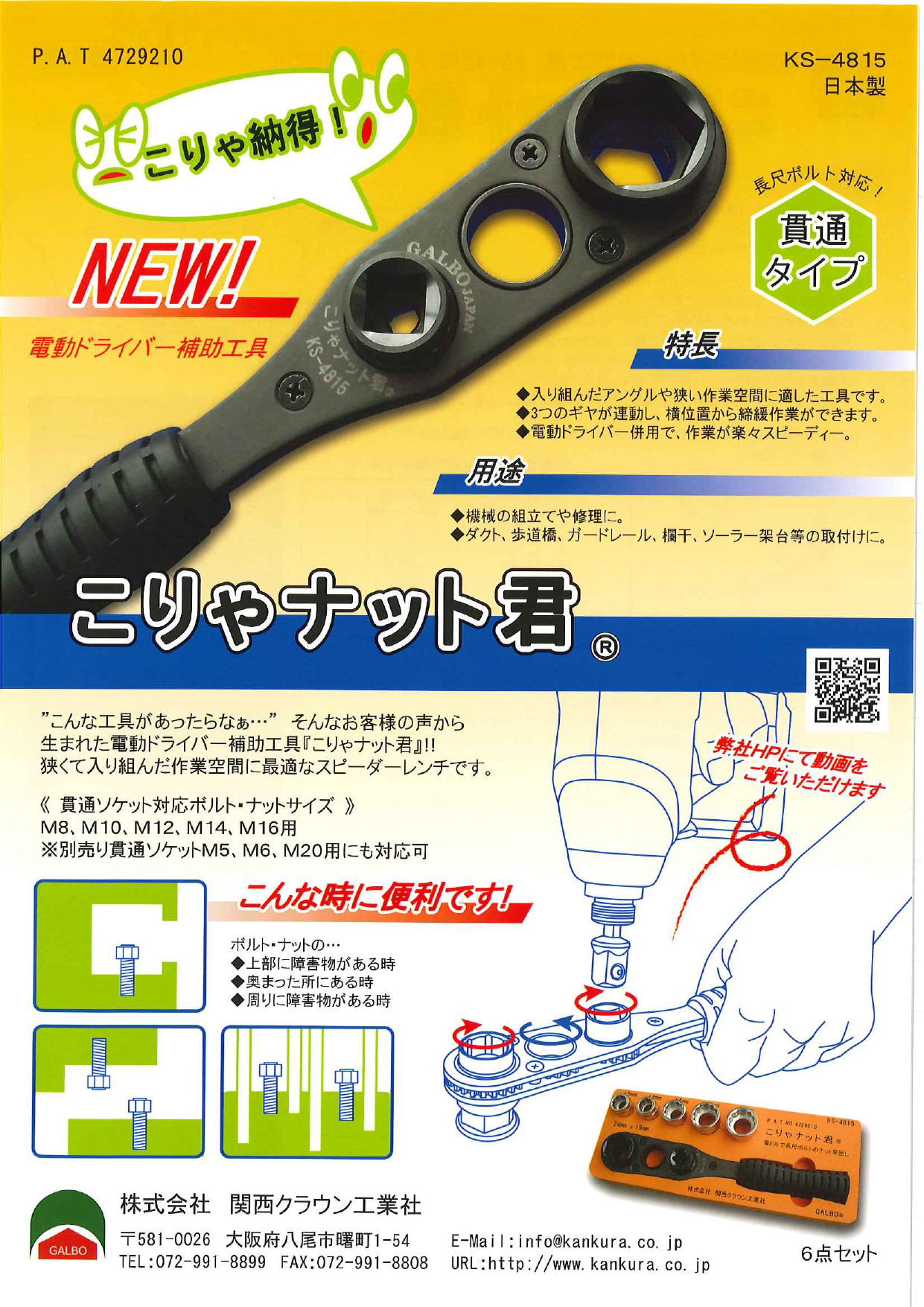 電動ドライバー補助工具 こりゃナット君 カタログのご案内です。