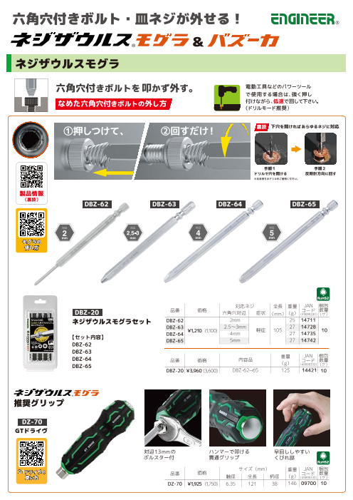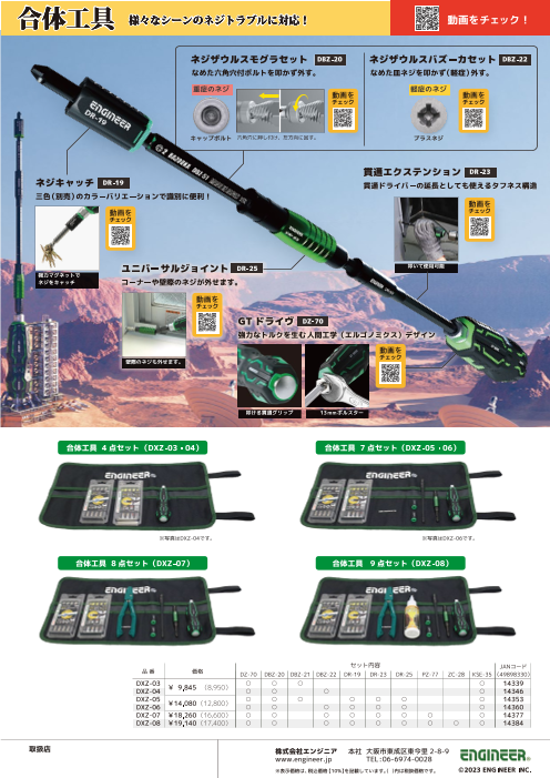 組み合わせによって様々なシーンのネジトラブルに対応する合体工具セット。