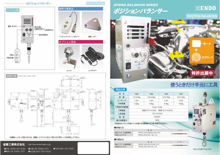 ■特長・ステッピングモータを搭載したスプリングバランサーです。・モータを制御し、設定位置まで吊り荷の自動下降と原点までの自動上昇が可能です。・自動での下降・上昇...
