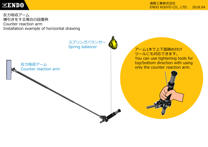 締め付け作業における反力による手首への衝撃を和らげ、安全に作業できる反力吸収アーム