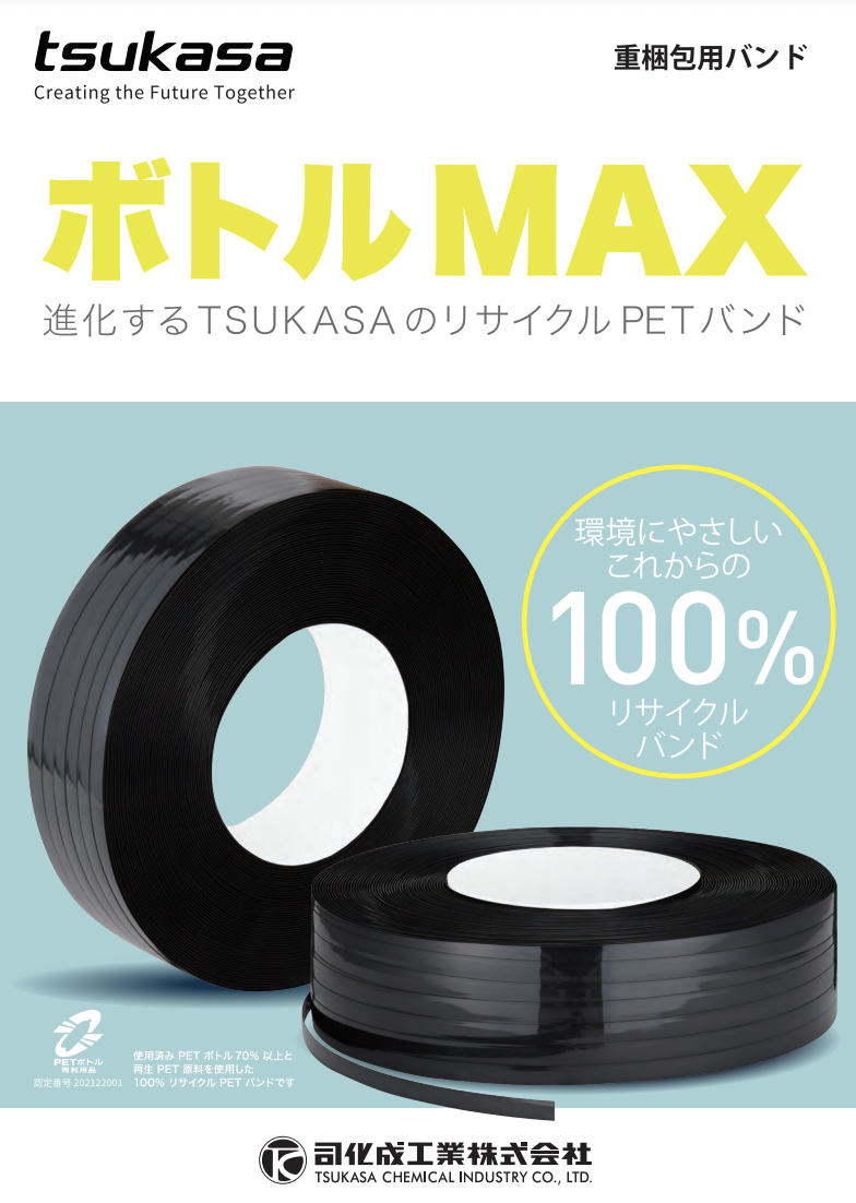 「ボトルto"ボトルMAX "」で環境にやさしいPETバンド◆PETボトルのサステナブル化を目指したリサイクル製品。循環型社会の実現に貢献!原料の70%以上は回収された使用済み...