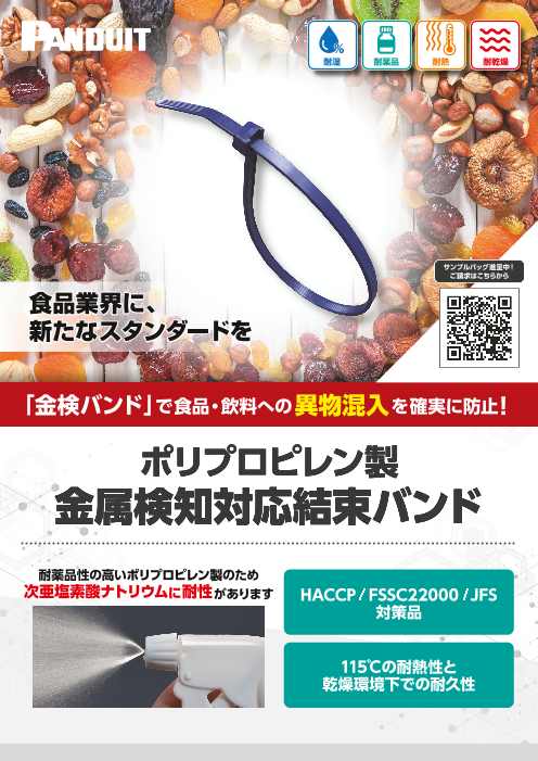 金属探知機に反応する鉄粉入りの結束バンドで、異物混入防止に威力を発揮します。◆特長◆・耐薬品性の高いポリプロピレン製のため次亜塩素酸ナトリウムに耐性があります...