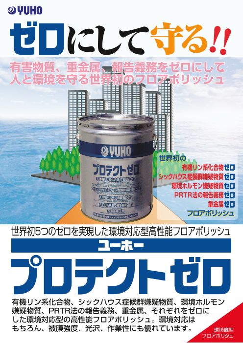 有機リン系化合物、シックハウス症候群嫌疑物質、環境ホルモン嫌疑物質、PRTR法の報告義務、重金属、それぞれをゼロにした環境対応型の高性能フロアポリッシュ。環境対応はもち...
