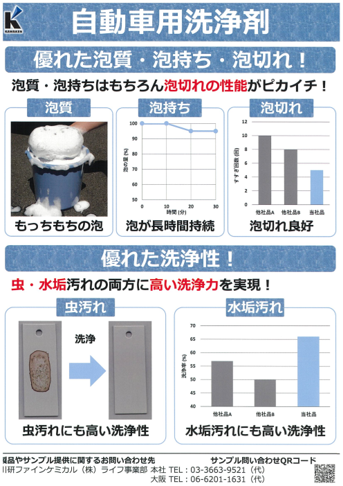 掲載製品・自動車用洗浄剤優れた泡質・泡持ち・泡切れ!泡質・泡持ちはもちろん泡切れの性能がピカイチ!優れた洗浄性!虫・水垢汚れの両方に高い洗浄力を実現!・工業用水系洗浄剤ヒトと環境と未来にやさしい洗浄剤!油汚れに対する高い洗浄性!...