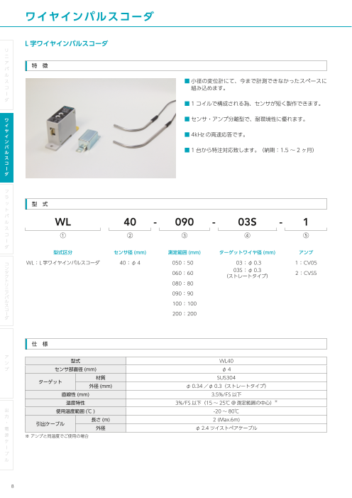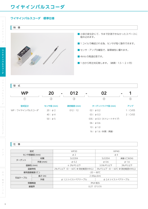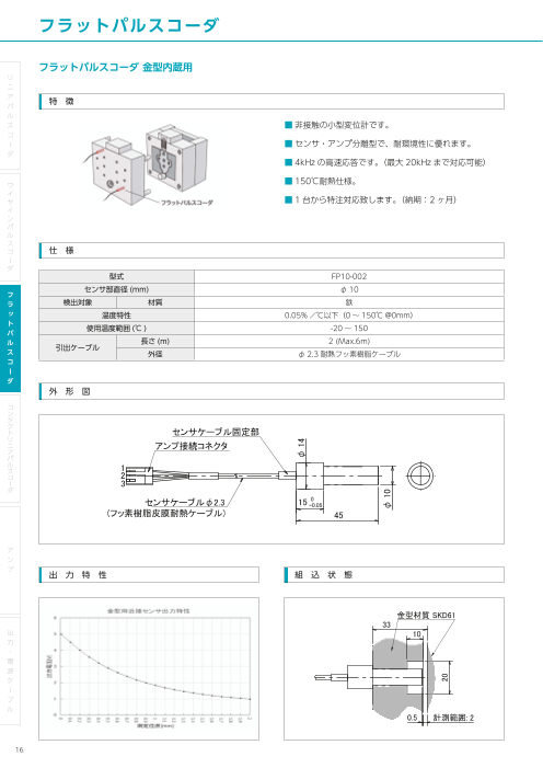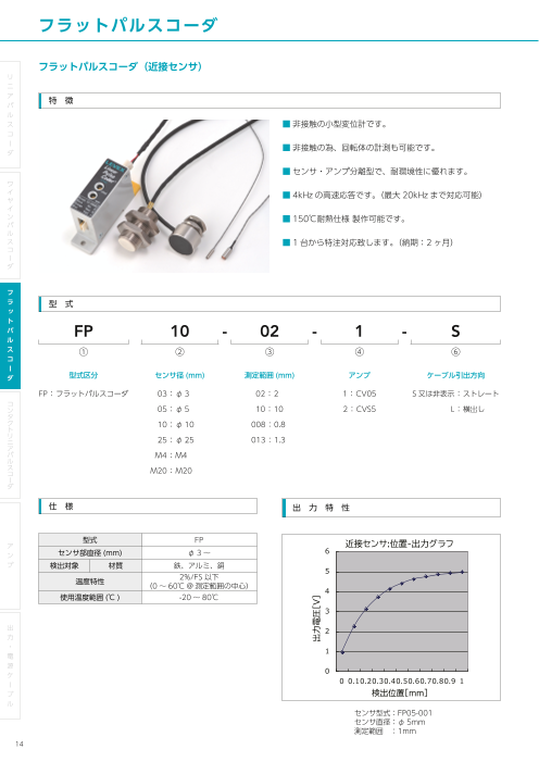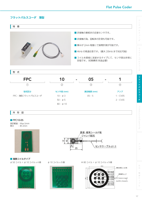 渦電流式の近接センサ フラットパルスコーダの製品カタログです。汎用の近接センサでは実現できない形状などは、1台からご相談ください。